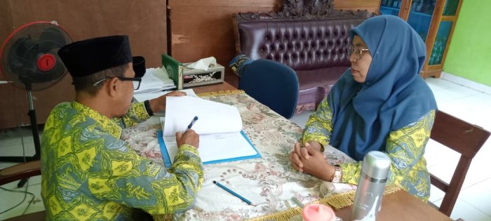 Guru mata pelajaran di Madrasah Ibtidaiyah Negeri (MIN) 1 Tebo mengikuti kegiatan supervisi perangkat pembelajaran yang dilakukan langsung oleh Kepala MIN 1 Tebo. Kegiatan ini merupakan agenda rutin yang dilaksanakan pada awal semester ganjil Tahun Ajaran 2025/2026. Supervisi ini bertujuan untuk memastikan kelengkapan dan kualitas perangkat administrasi pembelajaran yang digunakan oleh para guru.