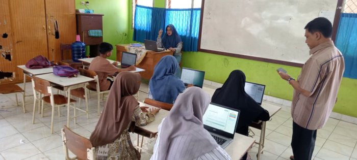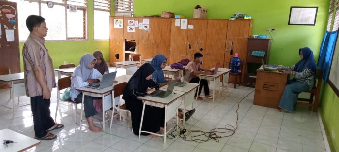 Tiga peserta terbaik dari kategori IPAS Terintegrasi, yaitu Latifa, Hani, dan Silma, menunjukkan keseriusan dalam mengerjakan soal-soal yang telah disiapkan panitia. Mereka tampak fokus dan teliti dalam membaca serta memahami setiap soal, dengan harapan dapat memperoleh hasil maksimal pada seleksi mendatang. Selama simulasi, para peserta didampingi oleh guru pendamping untuk membantu jika terjadi kendala teknis atau kesulitan dalam memahami soal.