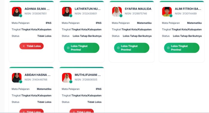 Pagi Kamis, 18 September 2025, menjadi momen membanggakan bagi keluarga besar MIN 1 Tebo. Setelah menanti hasil pengumuman melalui aplikasi OMI, tiga siswa terbaik dari madrasah MIN 1 Tebo dinyatakan lolos ke Olimpiade Madrasah Indonesia (OMI) tingkat provinsi. Ketiga siswa itu adalah Alim Fitroh Bai'tsurahman (Juara 3) dan Syafira Maulida (Juara 1) yang berkompetisi di bidang Matematika Terintegrasi, serta Lathifatun Nur'aini (Juara 2) di bidang IPAS Terintegrasi.