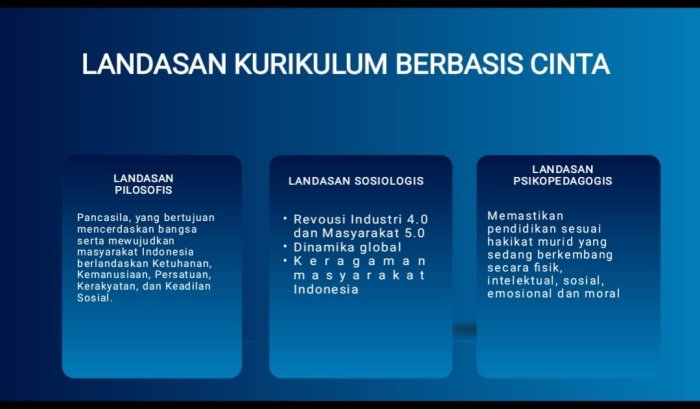 Kurikulum Berbasis Cinta (KBC) merupakan kurikulum yang dirancang dengan menitikberatkan pada pengembangan karakter, pembelajaran berbasis pengalaman, serta perhatian terhadap aspek sosial dan emosional dalam pendidikan. KBC bertujuan membentuk insan yang humanis, nasionalis, naturalis, toleran, dan menjadikan cinta sebagai prinsip dasar dalam kehidupan sehari-hari.