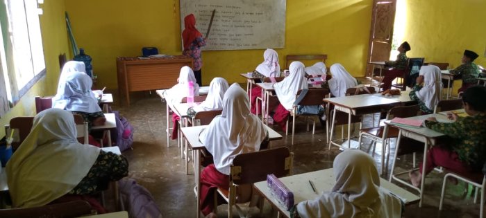 Pelaksanaan ujian berlangsung dengan tertib. Para siswa tampak antusias dan berhati-hati dalam mengerjakan soal yang ditulis oleh guru di papan tulis. Semangat belajar terlihat dari kesungguhan mereka dalam menjawab setiap pertanyaan, dengan harapan memperoleh nilai terbaik. Sebelumnya, para siswa juga telah mempersiapkan diri dengan belajar dan mengulang materi yang telah diajarkan di kelas.
