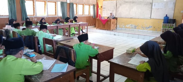 Setelah sesi penjelasan materi selesai, para siswa langsung mengerjakan soal-soal latihan yang terdapat pada buku Lembar Kerja Siswa (LKS). Latihan ini bertujuan untuk mengukur sejauh mana pemahaman siswa terhadap materi yang telah disampaikan. Siswa terlihat berusaha mencari jawaban atas pertanyaan yang diberikan dan mengisi buku latihan masing-masing dengan serius.