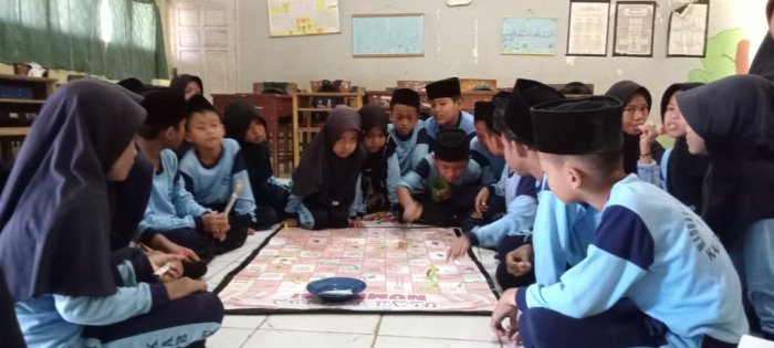 Dalam proses pembelajaran tersebut, guru menggunakan media permainan ular tangga sebagai alat bantu. Permainan ini dirancang khusus agar sesuai dengan materi pelajaran yang sedang dipelajari. Para siswa dibagi ke dalam beberapa kelompok untuk memainkan ular tangga, di mana setiap kelompok secara bergantian menggunakan media tersebut. Kelompok yang berhasil memenangkan permainan mendapatkan penghargaan dari guru, sehingga menambah motivasi siswa dalam belajar.