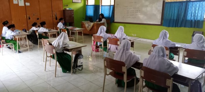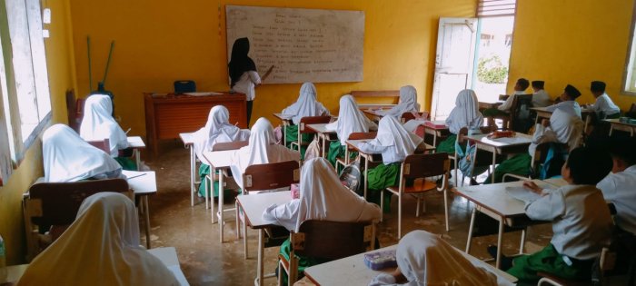 Dewan guru yang bertugas hari itu memulai pelajaran dengan menuliskan materi di papan tulis. Para siswa kelas rendah tampak bersemangat menyalin materi ke buku latihan mereka. Guru-guru secara aktif memantau dan membimbing siswa saat menulis, memastikan setiap anak memahami dan mencatat pelajaran dengan baik.