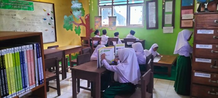 Pada Selasa, 7 Oktober 2025, para siswa Madrasah Ibtidaiyah Negeri (MIN) 1 Tebo kembali melaksanakan kegiatan rutin belajar di perpustakaan sekolah. Kegiatan ini diikuti oleh siswa secara mandiri maupun bersama para dewan guru. Ibu Fadliah Jumroh, S.Pd., selaku penjaga perpustakaan, secara langsung memandu jalannya proses pembelajaran di ruang pustaka.