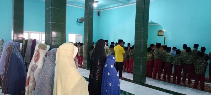 Pada Rabu, 8 Oktober 2025, para siswa Madrasah Ibtidaiyah Negeri (MIN) 1 Tebo kembali melaksanakan sholat dzuhur berjamaah di masjid yang berada di lingkungan madrasah. Kegiatan ini dilakukan secara rutin setiap hari setelah kegiatan belajar mengajar (KBM) selesai, tepatnya pada pukul 12.05 WIB.