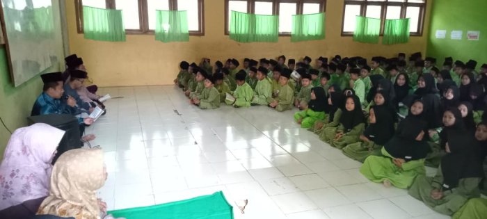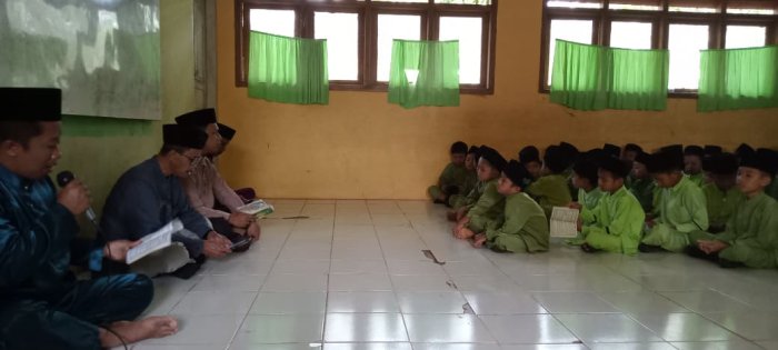 Kegiatan dimulai dengan para siswa memasuki aula dan duduk dengan rapi serta tertib. Proses pembiasaan ini dipandu oleh Ibu Suryanti, S.Pd.I, yang memastikan seluruh siswa mengikuti rangkaian acara dengan baik. Para siswa membawa buku Yasin sesuai arahan guru, sehingga mereka dapat membaca dan mengikuti kegiatan dengan sungguh-sungguh. Selama kegiatan berlangsung, suasana tertib dan disiplin terlihat jelas di antara para siswa.