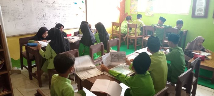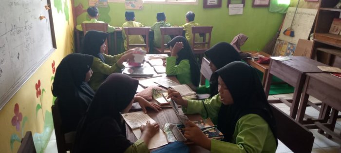 Selama pembelajaran, siswa aktif membaca berbagai buku yang tersedia di perpustakaan, baik buku cerita maupun buku pelajaran. Ibu Siti memberikan arahan agar siswa menjaga ketenangan dan mengikuti pembelajaran dengan sungguh-sungguh. Selain itu, siswa juga membawa buku tulis dan Lembar Kerja Siswa (LKS) untuk mengerjakan soal-soal latihan yang telah disiapkan oleh wali kelas.