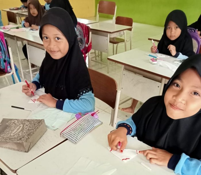 Dalam proses pembelajaran, para siswa tampak antusias dan bersemangat mengikuti setiap tahapan. Mereka menggunakan alat sederhana seperti cat, spidol, dan tisu untuk menciptakan motif batik sesuai dengan imajinasi masing-masing. Guru mewajibkan setiap siswa untuk memahami fungsi alat yang digunakan secara mandiri, agar mereka dapat berkreasi secara optimal.