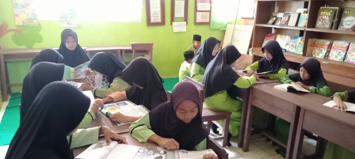 Sesampainya di perpustakaan, para siswa langsung mengambil buku-buku yang tersedia dan duduk di kursi yang telah disiapkan. Siswa laki-laki tampak memilih buku cerita dan buku Ilmu Pengetahuan Alam (IPA), sementara siswa perempuan lebih banyak membaca atlas dan buku Bahasa Indonesia yang berkaitan dengan materi pelajaran yang akan mereka pelajari bersama wali kelas. Suasana di perpustakaan terlihat sangat baik dengan para siswa yang tampak bersemangat dan antusias membaca.