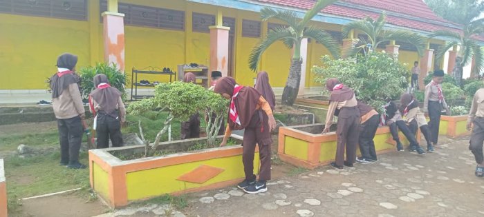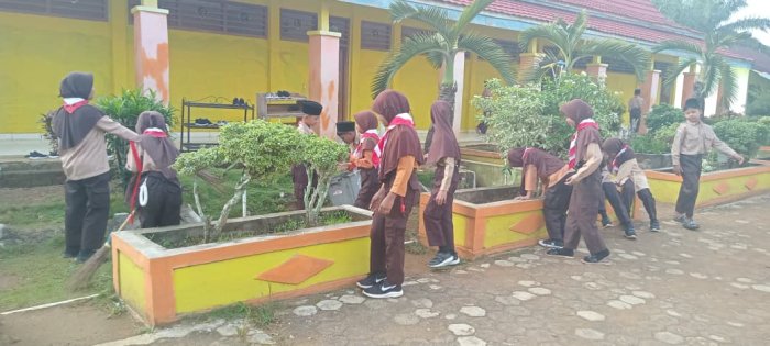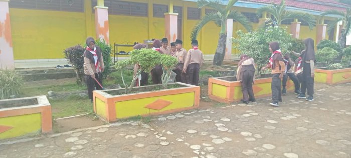 Melihat kondisi kelas dan taman yang terlihat ada sampah, para siswa segera mengambil peralatan seperti sapu lidi dan tong sampah. Mereka bersama-sama membersihkan area taman dan lingkungan kelas. Tidak hanya siswa yang mendapat jadwal piket, siswa lain pun turut serta membantu memungut sampah dan merapikan taman agar lingkungan sekolah terlihat rapi, bersih, dan nyaman.
