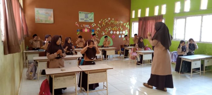 Dewan guru MIN 1 Tebo melaksanakan pembelajaran di kelas dengan penuh semangat dan antusias. Selama proses belajar, beberapa guru menerapkan metode ice breaking, seperti permainan huruf vokal A, I, U, E, O yang dilakukan oleh siswa kelas 1. Sementara itu, di kelas lain, guru tampak menjelaskan materi pelajaran sambil mengawasi siswa yang mengerjakan soal-soal latihan. Setiap guru memiliki strategi tersendiri dalam menyampaikan materi agar siswa lebih mudah memahami pelajaran yang diberikan hari itu.
