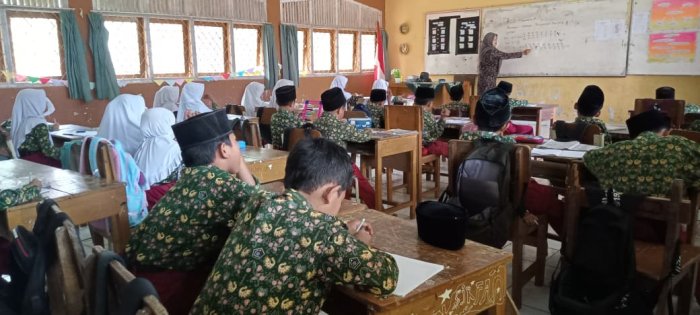 Khusus untuk kelas 3, siswa mengerjakan soal-soal latihan Matematika di buku LKS. Guru memberikan contoh soal di papan tulis sebagai panduan, sehingga siswa dapat memahami materi dengan lebih baik. Kegiatan ini bertujuan untuk meningkatkan pemahaman siswa terhadap pelajaran yang sedang dipelajari.