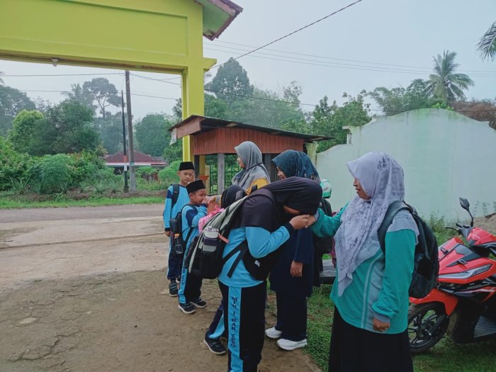 Piket pagi dimulai sejak pukul 06.20 WIB dan berlangsung hingga seluruh siswa hadir di madrasah. Pada hari tersebut, para guru yang bertugas antara lain Ibu Nurhidayah, S.Pd.I, Ibu Marlena, S.Pd.I, Ibu Rahmawani Maghfiroh, S.Pd, dan Ibu Fadliah Jumroh, S.Pd. Mereka terlihat antusias dan penuh semangat saat menunggu kedatangan para siswa di gerbang madrasah. Suasana pagi hari diwarnai dengan canda tawa ringan di antara para guru, menciptakan suasana hangat dan ramah.