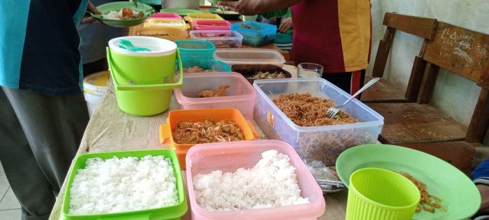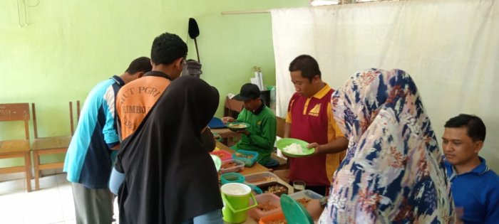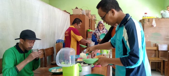 Dewan guru MIN 1 Tebo mengadakan kegiatan makan siang bersama di lingkungan madrasah setelah melaksanakan gotong royong memperbaiki jalan menuju area parkir. Acara makan bersama ini berlangsung di salah satu ruang madrasah dan diikuti oleh seluruh dewan guru serta staf. Para guru membawa bekal berupa nasi, lauk, dan sayur dari rumah masing-masing untuk dinikmati bersama.