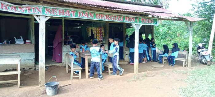 Kantin sehat di Madrasah Ibtidaiyah Negeri (MIN) 1 Tebo menjadi pilihan utama para siswa untuk membeli makanan dan minuman saat jam istirahat. Setiap hari, kantin ini menyediakan beragam menu sehat yang dirancang untuk memenuhi kebutuhan gizi siswa. Terdapat lima penjual yang secara rutin melayani pembelian makanan di kantin madrasah tersebut.