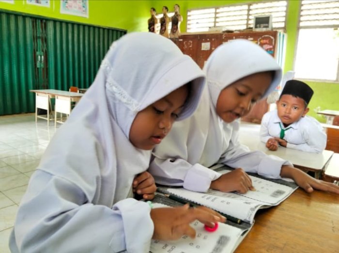 Setelah jam istirahat, siswa kembali ke kelas untuk melanjutkan pembelajaran. Pada jam kedua ini, fokus utama adalah meningkatkan kemampuan literasi membaca. Kegiatan membaca dilakukan secara bergantian, di mana setiap siswa mendapat kesempatan untuk membaca di depan kelas. Wali kelas membimbing proses ini dengan sabar, memastikan setiap siswa dapat mengikuti dan memahami materi yang diberikan.