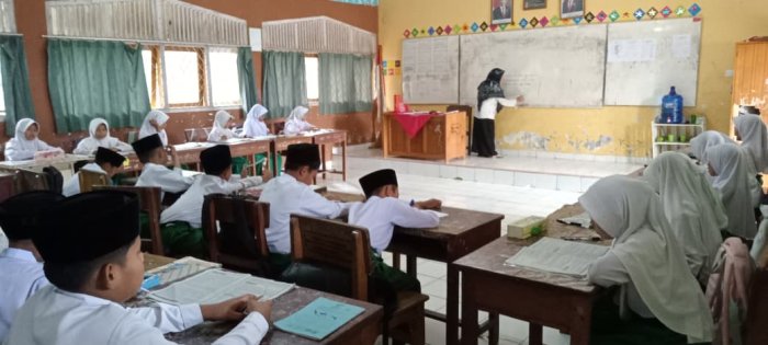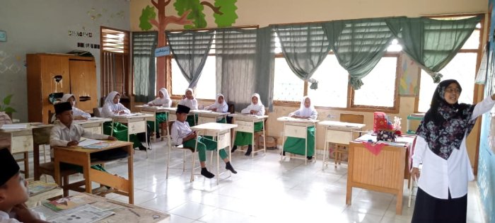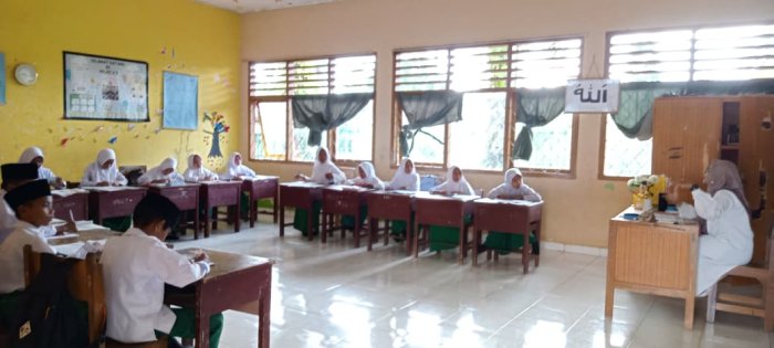 Selain penjelasan materi, siswa juga diberikan latihan soal melalui buku Lembar Kerja Siswa (LKS) yang telah disediakan. Mereka mengerjakan soal-soal tersebut dengan sungguh-sungguh sebagai upaya meraih hasil belajar yang maksimal. Kegiatan belajar hari ini menjadi momen penting bagi siswa kelas tinggi untuk menumbuhkan semangat baru dalam menuntut ilmu, baik melalui pembiasaan maupun pembelajaran di kelas.