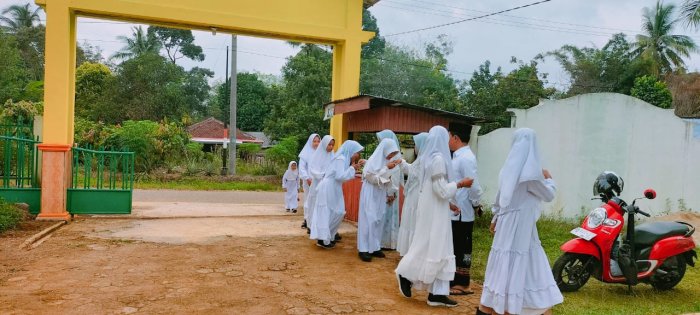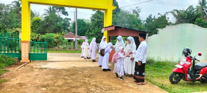 Pada Rabu, 22 Oktober 2025, dewan guru Madrasah Ibtidaiyah Negeri (MIN) 1 Tebo kembali melaksanakan kegiatan piket menyambut siswa di gerbang madrasah. Kegiatan ini merupakan rutinitas harian yang dijalankan sesuai jadwal yang telah ditetapkan oleh pihak madrasah. Para guru yang bertugas pada hari tersebut sudah bersiap sejak pukul 06.20 WIB untuk menyambut kehadiran para siswa. Pada pagi itu, guru yang bertugas melaksanakan piket adalah Bapak Suyono, S.Pd.I, Ibu Dwi Hastuti, S.Pd, dan Ibu Nemawani, S.Pd.I. Ketiga dewan guru tersebut kompak dan penuh semangat dalam menjalankan tugas, sehingga suasana penyambutan berlangsung lancar. Kehadiran guru di gerbang madrasah tidak hanya memberikan rasa aman bagi siswa, tetapi juga memotivasi mereka untuk lebih bersemangat dalam menuntut ilmu.