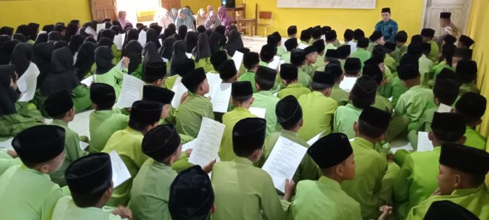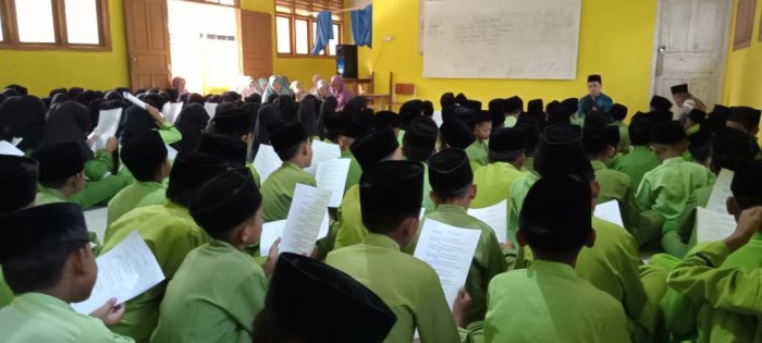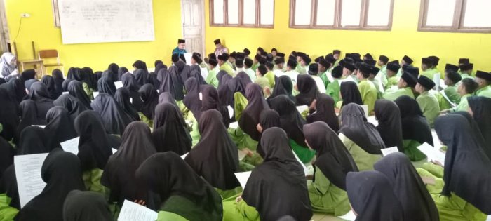 Kegiatan hafalan doa ini dipandu langsung oleh Ibu Dharmawati, S.Ag, bersama dewan guru lainnya yang bertugas mendampingi siswa selama pelaksanaan. Seluruh dewan guru dan staf madrasah juga turut hadir untuk memastikan siswa mengikuti kegiatan dengan serius. Untuk membantu proses hafalan, para guru membagikan kertas berisi bacaan doa-doa pendek yang akan dihafalkan pada hari itu.
