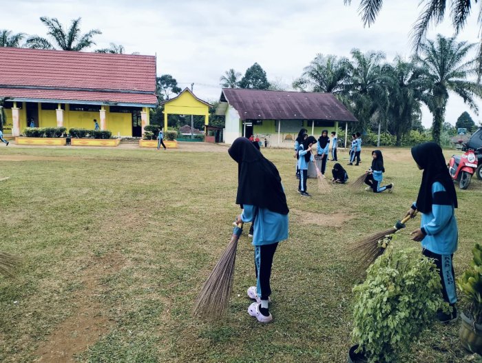 Pembagian tugas dilakukan secara terstruktur. Siswa putri bertanggung jawab menyapu halaman, sedangkan siswa laki-laki bertugas membuang sampah ke tempat yang telah disediakan. Kegiatan ini bertujuan tidak hanya untuk menjaga kebersihan lingkungan madrasah, tetapi juga untuk menumbuhkan semangat gotong royong dan mempererat kekompakan antar siswa.