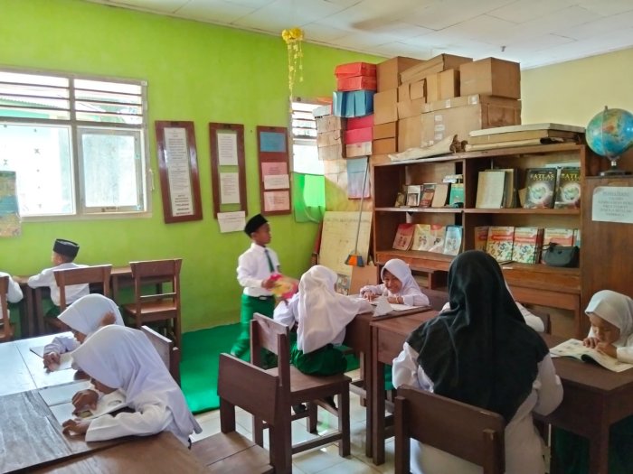 Selama berada di perpustakaan, suasana belajar dibuat menyenangkan. Siswa tidak hanya membaca buku pelajaran, tetapi juga menikmati cerita rakyat dan buku bacaan lainnya. Aktivitas ini berlangsung dengan suasana santai, di mana siswa dapat bercanda sambil tetap fokus pada kegiatan membaca.