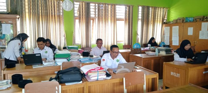 Pada Senin, 27 Oktober 2025, para guru di Madrasah Ibtidaiyah Negeri (MIN) 1 Tebo terlihat serius dan fokus dalam menyelesaikan tugas Sasaran Kinerja Pegawai (SKP) Triwulan Empat. Kegiatan ini mulai dilaksanakan pada bulan Oktober dan menjadi bagian penting dalam penilaian kinerja tahunan Aparatur Sipil Negara (ASN) di lingkungan sekolah tersebut. SKP merupakan alat ukur kinerja dan target kerja yang harus dicapai ASN dalam satu tahun. Proses pengerjaan SKP Triwulan Empat di MIN 1 Tebo dimulai pukul 11.00 WIB di ruang kantor guru. Namun, tidak semua guru dapat mengikuti kegiatan ini secara bersamaan karena sebagian dewan guru masih harus melaksanakan tugas mengajar di kelas sesuai jadwal yang telah ditetapkan.