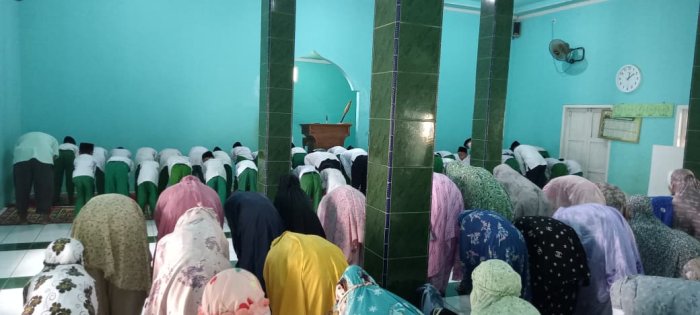 Selain siswa, para dewan guru juga turut melaksanakan sholat dzuhur berjamaah. Kehadiran guru tidak hanya untuk beribadah, tetapi juga untuk memantau dan memastikan siswa tetap tertib selama pelaksanaan sholat. Hal ini menjadi bagian dari upaya pembiasaan disiplin dan pembentukan karakter religius di lingkungan sekolah.