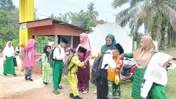Semangat para guru terlihat lebih membara dari biasanya. Dewan guru menyambut setiap siswa dengan senyuman dan sapaan hangat, menciptakan suasana penuh motivasi di pagi hari. Kehadiran guru-guru yaitu Ibu Ida Purwanti, S.Pd.I, Ibu Armila Suinta, S.Pd.I, Ibu Dwi Hastuti, S.Pd serta Ibu Falikhatus Saadah, S.Pd yang telah standby di gerbang memberikan contoh kedisiplinan dan keramahan kepada seluruh siswa.