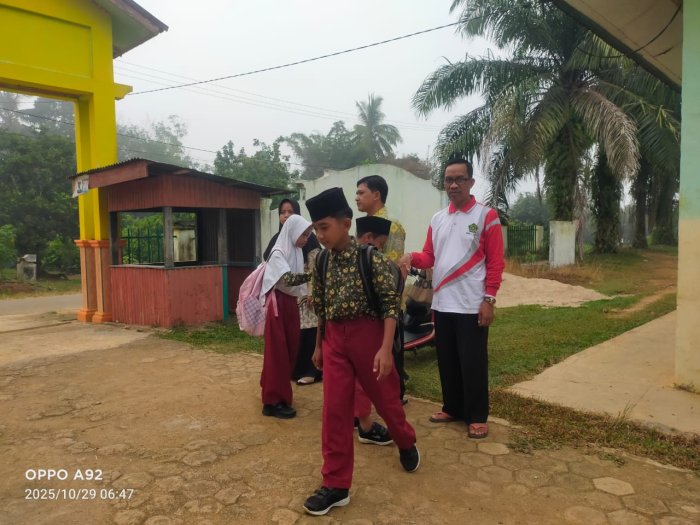 Pada Rabu, 29 Oktober 2025, dewan guru MIN 1 Tebo kembali melaksanakan kegiatan piket pagi di gerbang madrasah. Kegiatan ini merupakan bagian dari pembiasaan yang dilakukan setiap hari sesuai jadwal yang telah ditetapkan oleh pihak sekolah. Tujuan utama dari kegiatan ini adalah untuk meningkatkan kedisiplinan siswa serta mempererat keharmonisan di lingkungan MIN 1 Tebo. Pada hari ini, semangat para guru terlihat jelas saat mereka menjalankan tugas piket. Sejak pukul 06.20 WIB, para guru sudah bersiap di gerbang untuk menyambut kedatangan siswa. Guru yang bertugas pada hari itu antara lain Bapak Suyono, S.Pd.I, Ibu Dwi Hastuti, S.Pd, dan Ibu Nemawani, S.Pd.I. Selain guru yang terjadwal piket, beberapa guru lain juga turut hadir untuk mengikuti kegiatan penyambutan siswa. Hal ini menunjukkan kekompakan dan komitmen dewan guru dalam menjalankan tugas dengan penuh tanggung jawab.