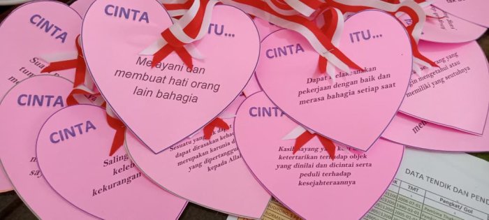 Dalam kegiatan tersebut, Kepala MIN 1 Tebo dan seluruh dewan guru serta staf madrasah menuliskan makna cinta menurut inspirasi masing-masing. Makna cinta ini kemudian dikaitkan dengan penerapan Kurikulum Berbasis Cinta yang akan dijalankan di MIN 1 Tebo. Berbagai makna cinta yang telah ditulis oleh para guru akan dijadikan pedoman dalam pelaksanaan kurikulum ini di madrasah.