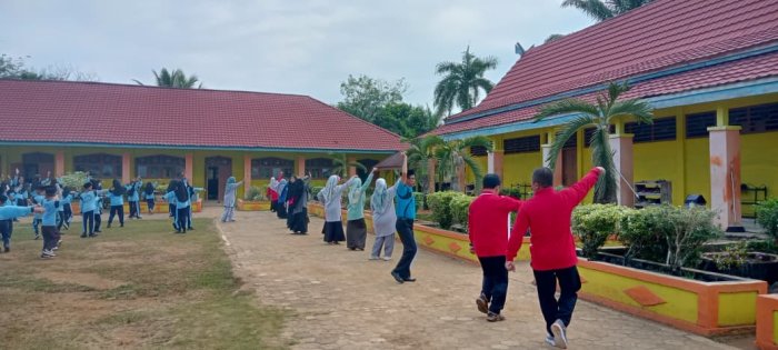 Kegiatan senam di MIN 1 Tebo ini diikuti secara aktif oleh seluruh siswa dan dewan guru. Kepala MIN 1 Tebo, Bapak H. Ruslani, S.Pd., M.M, juga hadir dan ikut serta dalam senam bersama. Beliau memantau langsung jalannya kegiatan untuk memastikan seluruh rangkaian berjalan dengan baik dan tertib. Kehadiran kepala madrasah serta seluruh dewan guru dan staf memberikan dampak positif, yaitu menambah semangat siswa dalam melaksanakan pembiasaan senam. Selama kegiatan, guru juga memperhatikan kedisiplinan siswa. Beberapa siswa yang terlihat tidak fokus atau berbicara saat senam diarahkan untuk melakukan gerakan secara mandiri di bawah pengawasan guru. Langkah ini diambil agar siswa lebih serius dan memahami pentingnya mengikuti senam dengan baik.