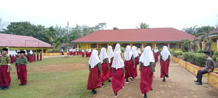 Pada Kamis, 6 November 2025, seluruh siswa MIN 1 Tebo mengikuti kegiatan pembiasaan baris-berbaris (LKBB) yang menjadi agenda wajib bagi siswa kelas 1 hingga kelas 6. Kegiatan ini bertujuan untuk membiasakan siswa memahami gerakan baris-berbaris, meningkatkan kedisiplinan, serta mempersiapkan siswa agar lebih siap dalam mengikuti upacara di lingkungan madrasah. Pelaksanaan LKBB dimulai pukul 07.15 WIB di lapangan madrasah. Kepala MIN 1 Tebo, Bapak H. Ruslani, S.Pd., M.M, hadir langsung untuk memantau jalannya kegiatan. Beliau menyampaikan harapannya agar pembiasaan LKBB dapat memberikan dampak positif, terutama dalam membentuk karakter disiplin dan keterampilan baris-berbaris yang baik pada siswa. Menurut kepala MIN 1 Tebo, pemahaman gerakan baris-berbaris sangat penting untuk mendukung pelaksanaan upacara dan kegiatan sekolah lainnya.