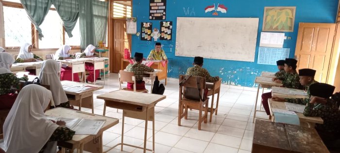 Pembelajaran dimulai ketika dewan guru memasuki kelas. Guru-guru yang mengajar di kelas tinggi tampak aktif menjelaskan materi pelajaran dengan jelas dan sistematis. Seluruh siswa menunjukkan perhatian penuh dan mendengarkan penjelasan guru dengan serius. Ketika guru mengajukan pertanyaan, para siswa mampu menjawab dengan baik, menandakan pemahaman yang baik terhadap materi yang disampaikan. Dewan guru juga menunjukkan antusiasme dalam memberikan materi serta memastikan setiap siswa memahami pelajaran yang diberikan. Untuk memperkuat pemahaman, guru memberikan latihan soal melalui buku LKS yang telah tersedia. Para siswa mengerjakan soal-soal latihan tersebut dengan sungguh-sungguh, berupaya memperoleh hasil terbaik sebagai persiapan menghadapi ujian semester ganjil yang akan berlangsung pada bulan Desember mendatang.