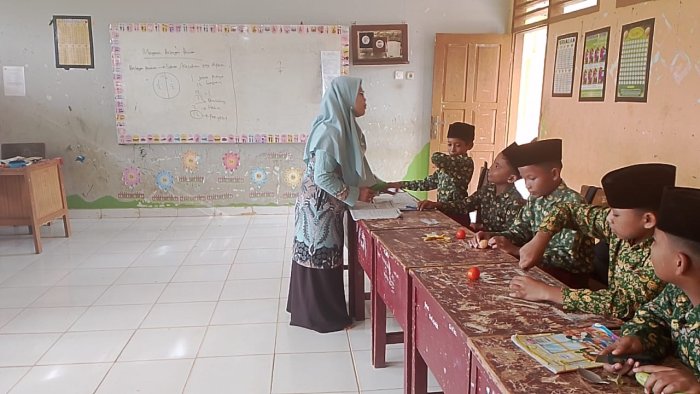 Pada Kamis, 6 November 2025, siswa kelas 5B MIN 1 Tebo mengikuti pembelajaran Matematika bersama wali kelas, Ibu Armila Suinta, S.Pd.I. Dalam kegiatan ini, para siswa tampak antusias dan bersemangat selama proses belajar di dalam kelas. Materi yang diajarkan pada hari itu adalah tentang pecahan. Untuk memudahkan pemahaman siswa, Ibu Armila Suinta, S.Pd.I menggunakan metode pembelajaran kontekstual dengan memanfaatkan buah-buahan sebagai media belajar. Siswa membawa berbagai jenis buah seperti jeruk, pir, apel, dan jambu. Buah-buahan tersebut kemudian dipotong menjadi beberapa bagian yang sama besar untuk menggambarkan konsep pecahan secara nyata.
