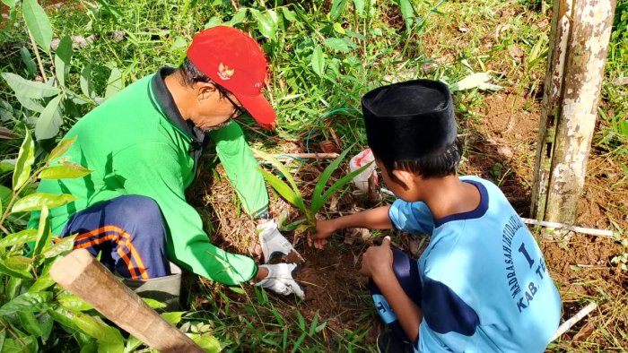 Penetapan tanda batas atau patok tanah ini menjadi langkah penting bagi pihak madrasah untuk memastikan kejelasan luas dan batas-batas tanah yang dimiliki oleh MIN 1 Tebo. Patok tanah dipasang di setiap sudut lahan sebagai titik kontrol, sehingga memudahkan identifikasi dan pengelolaan aset madrasah ke depannya. Selain itu, pemasangan patok juga menjadi acuan bagi masyarakat sekitar agar mengetahui batas lahan milik madrasah. Dalam kesempatan tersebut, Kepala MIN 1 Tebo Bapak H. Ruslani, S.Pd., M.M bersama dewan guru juga menanam pohon pinang di sepanjang batas tanah. Penanaman pohon pinang ini diharapkan dapat menjadi penanda alami sekaligus pembatas antara tanah madrasah dan lahan milik warga sekitar. Selain itu, penanaman pohon seperti sawit juga direncanakan agar hasilnya dapat dimanfaatkan untuk mendukung kebutuhan madrasah.