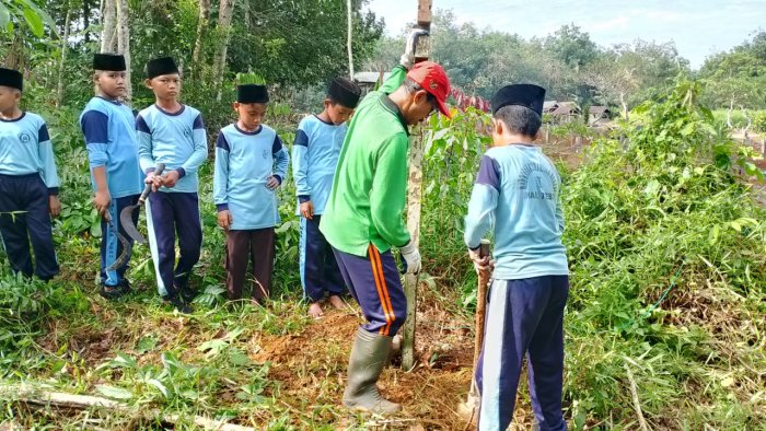 Pada Sabtu, 8 November 2025, Kepala MIN 1 Tebo, Bapak H. Ruslani, S.Pd., M.M., bersama dewan guru laki-laki melaksanakan kegiatan gotong royong di area belakang madrasah. Kegiatan ini dilakukan untuk membersihkan dan menata aset tanah milik MIN 1 Tebo. Seluruh dewan guru menunjukkan kekompakan dengan bekerja sama membersihkan rumput dan semak yang tumbuh di sekitar lahan madrasah. Selain dewan guru, para siswa laki-laki juga turut berpartisipasi dalam kegiatan tersebut. Mereka membantu membawa peralatan yang diperlukan dan mengikuti arahan dalam proses gotong royong. Salah satu fokus utama kegiatan ini adalah pemasangan tanda batas tanah menggunakan tali dan tiang yang bertujuan untuk memperjelas batas kepemilikan lahan MIN 1 Tebo.