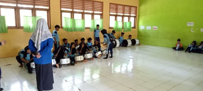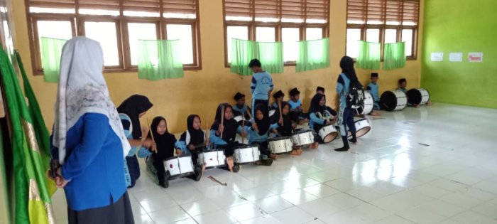 Grup drumband Gema Thulab Finnajah dari MIN 1 Tebo kembali menggelar latihan rutin dengan penuh semangat dan antusiasme. Kegiatan ini dilaksanakan mulai pukul 10.00 WIB hingga selesai di aula madrasah. Seluruh siswa peserta drumband membawa alat musik masing-masing dan berkumpul untuk berlatih bersama, menciptakan suasana yang kompak dan tertib. Peserta drumband terdiri dari siswa kelas 3 hingga kelas 6. Mereka menunjukkan kesungguhan dalam mengikuti setiap sesi latihan. Pada kesempatan kali ini, latihan dipandu langsung oleh pembina drumband, Ibu Ida Purwanti, S.Pd.I, yang juga merupakan wali kelas 2. Di bawah bimbingan beliau, para siswa berlatih dengan serius untuk meningkatkan kekompakan dan kualitas permainan. Suara alat drumband yang dimainkan terdengar merdu dan menggema di lingkungan madrasah, menandakan keseriusan para siswa dalam berlatih.