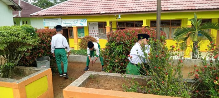Para siswa perempuan juga diimbau oleh dewan guru untuk membawa ember, bunga dan juga pupuk. Mereka tampak semangat dalam membersihkan lingkungan kelas mereka masing-masing serta menanam bunga di taman madrasah serta menjada lingkungan madrasah agar selalu bersih dan rapi setiap saat. Rumput-rumput juga dibersihkan oleh siswa di area taman dan selokan sehingga memudahkan siswa dalam hal menyapu halaman serta melaksanakan kebersihan lingkungan madrasah. Para siswa laki-laki juga tampak mengambil sampai secara bersama-sama di sekitar taman madrasah yang menunjukkan keseriusan siswa dalam menjaga lingkungan madrasah agar selalu bersih dan rapi. Kebersihan yang dilaksanakan oleh siswa dapat meningkatkan kesehatan dan mengurangi resiko penyakit, dapat menciptakan lingkungan belajar yang nyaman dan dapat sehingga para siswa selalu meningkatkan konsentrasi dalam belajar, dapat menumbuhkan sikap positif seperti bertanggung jawab, kedisiplinan, serta kepedulian terhadap lingkungan.