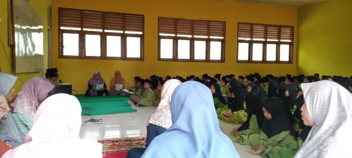 Pembiasaan istighosah ini dipandu oleh Bapak Sri Budiyono, S.Pd.I, bersama seluruh dewan guru yang bertugas. Para guru juga membagikan kertas berisi bacaan istighosah sebagai panduan bagi siswa. Selain membaca bersama, siswa diharapkan dapat menghafal bacaan tersebut. Seluruh siswa tampak antusias dan bersemangat mengikuti kegiatan, menunjukkan keseriusan mereka dalam menjalankan pembiasaan keagamaan di lingkungan madrasah. Kegiatan ini bertujuan untuk menanamkan nilai-nilai keagamaan dan membiasakan siswa menjalankan amalan baik sejak dini.