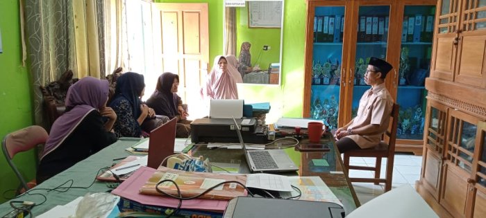 Pada Jumat, 14 November 2025, Kepala Madrasah Ibtidaiyah Negeri (MIN) 1 Tebo, Bapak H. Ruslani, S.Pd., M.M, mengumpulkan para penjual kantin di ruang kantor kepala madrasah. Pertemuan ini bertujuan untuk memberikan pembinaan dan arahan terkait standar makanan dan minuman yang dijual di lingkungan madrasah. Dalam arahannya, Kepala MIN 1 Tebo menekankan pentingnya menyediakan menu yang bergizi dan sehat bagi siswa. Ia mengingatkan para penjual agar hanya menjual makanan dan minuman yang dapat menunjang tumbuh kembang siswa, seperti makanan yang kaya nutrisi dan aman dikonsumsi. Kepala madrasah juga mengimbau agar kantin selalu menjaga kebersihan dan kenyamanan, termasuk dengan melakukan renovasi dan pengecatan ulang agar suasana kantin menjadi lebih bersih dan nyaman untuk siswa.