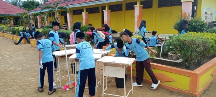 Pada Sabtu, 15 November 2025, siswa MIN 1 Tebo kembali melaksanakan kegiatan rutin menjaga kebersihan lingkungan madrasah. Kegiatan ini dilakukan secara bersama-sama oleh seluruh siswa dengan membersihkan area kelas dan taman madrasah. Para siswa tampak antusias dan bekerja dengan sungguh-sungguh dalam membersihkan meja belajar, menyapu, mengepel, serta mengelap kelas masing-masing agar tetap bersih dan nyaman. Selain membersihkan ruang kelas, siswa juga memungut sampah di sekitar taman dan memastikan tidak ada kotoran yang tertinggal. Siswa laki-laki terlihat bergotong royong membersihkan meja agar bebas dari debu, sehingga suasana belajar di kelas menjadi lebih nyaman dan lancar. Kerja sama antarsiswa dalam kegiatan ini membuat pekerjaan menjadi lebih ringan dan cepat selesai, serta menciptakan lingkungan belajar yang kondusif.