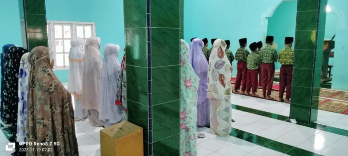 Pada Rabu, 19 November 2025, seluruh siswa kelas 5 MIN 1 Tebo, baik dari kelas 5A maupun 5B, kembali melaksanakan kegiatan rutin berupa sholat dhuha berjamaah di masjid yang berada di area madrasah. Kegiatan ini merupakan bagian dari program pembiasaan yang dijadwalkan setiap hari Rabu dan telah menjadi komitmen para siswa untuk dijalankan secara konsisten. Kegiatan sholat dhuha berjamaah ini dimulai setelah seluruh siswa hadir di madrasah dan bersalaman dengan para guru. Dengan penuh semangat, siswa kelas 5 langsung menuju masjid, mengambil air wudhu, dan duduk rapi menunggu rekan-rekan lainnya. Sambil menunggu, dewan guru mengajak siswa bersholawat bersama untuk memohon kelancaran dalam menerima ilmu selama proses pembelajaran.