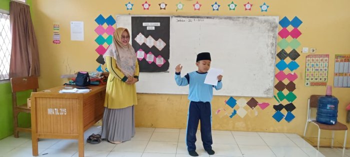 Pada Sabtu, 22 November 2025, siswa kelas 1A menunjukkan semangat belajar di dalam kelas bersama wali kelas, Ibu Suryanti, S.Pd.I. Kegiatan pembelajaran dimulai setelah seluruh siswa menyelesaikan pelajaran jam pertama dan beristirahat bersama. Pada hari ini, siswa kelas 1A mengikuti pelajaran Bahasa Indonesia dengan fokus pada praktik membaca puisi. Seluruh siswa diminta membacakan puisi secara satu per satu di depan wali kelas. Kegiatan ini merupakan tindak lanjut dari imbauan dewan guru pada pertemuan sebelumnya, di mana siswa diminta membuat puisi bertema "Guruku". Tema ini diangkat dalam rangka menyambut Hari Guru Nasional yang akan diperingati pada Tanggal 25 November 2025 .
