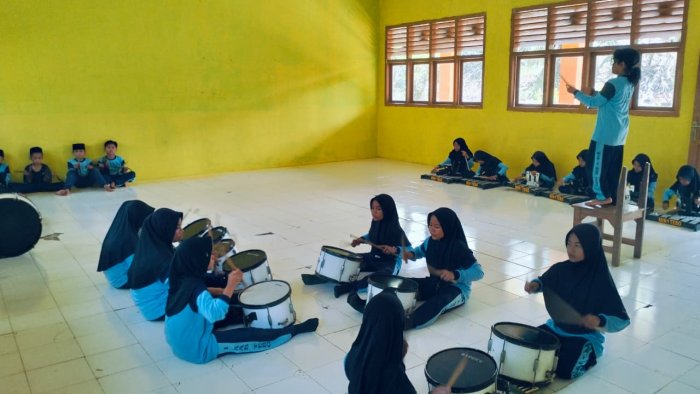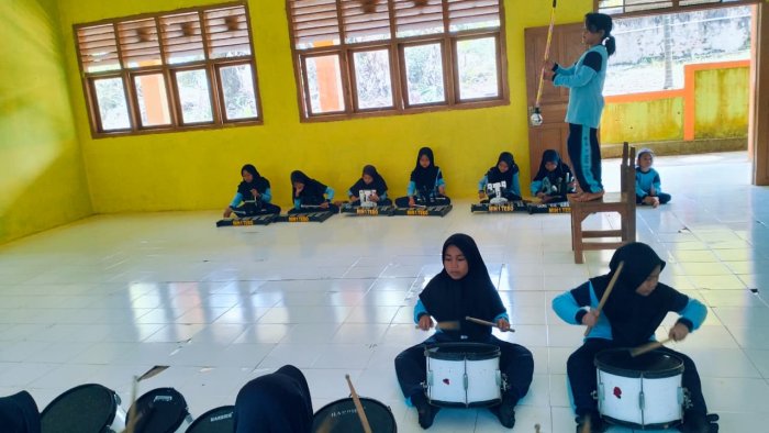 Grup drumband Gema Thulab Finnajah dari MIN 1 Tebo kembali menggelar latihan rutin dengan penuh semangat dan antusiasme. Latihan ini berlangsung mulai pukul 10.00 WIB hingga selesai di lingkungan madrasah. Seluruh siswa yang tergabung dalam grup drumband hadir membawa alat masing-masing dan berkumpul untuk berlatih bersama, menciptakan suasana yang kompak dan terkoordinasi. Peserta drumband terdiri dari siswa kelas 3 hingga kelas 6. Mereka secara konsisten menunjukkan kesungguhan dalam mengikuti latihan. Pada kesempatan kali ini, latihan dipandu langsung oleh pembina drumband, Ibu Ida Purwanti, S.Pd.I, yang juga merupakan wali kelas 2. Dengan bimbingan beliau, para siswa berlatih dengan serius untuk meningkatkan kekompakan dan keterampilan memainkan alat drumband. Suara alat drumband yang dimainkan terdengar merdu dan menggema di sekitar madrasah, menandakan keseriusan para peserta.