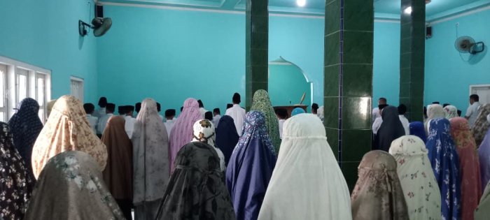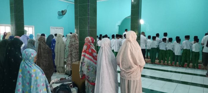 Seluruh siswa menunjukkan semangat dan antusiasme dalam mengikuti sholat dzuhur berjamaah. Mereka berupaya melaksanakan ibadah dengan khusyuk dan sungguh-sungguh, sebagai bagian dari pembentukan karakter religius di lingkungan sekolah. Selain siswa, para dewan guru juga turut serta dalam sholat berjamaah dan memantau jalannya kegiatan agar tetap berjalan tertib dan rapi. Setelah sholat selesai, para siswa tetap duduk dengan tertib untuk mengikuti dzikir dan doa bersama. Kegiatan ini bertujuan agar siswa mendapatkan kemudahan dalam menuntut ilmu serta memperoleh keridhoan dari Allah SWT. Kepala MIN 1 Tebo, Bapak H. Ruslani, S.Pd., M.M, mengimbau seluruh siswa untuk melaksanakan sholat dzuhur berjamaah dengan khusyuk dan penuh kesungguhan. Beliau menekankan bahwa kegiatan ini bukan sekadar rutinitas, melainkan bentuk ibadah kepada Allah SWT yang harus dijalankan dengan niat yang tulus.