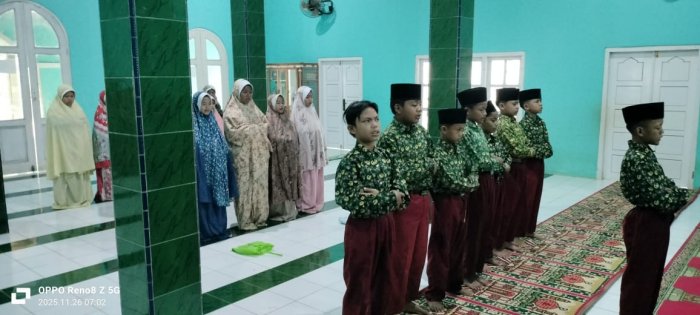Pada Rabu, 26 November 2025, seluruh siswa kelas 5 MIN 1 Tebo, baik kelas 5A maupun 5B, melaksanakan kegiatan rutin berupa sholat dhuha berjamaah di masjid area madrasah. Kegiatan ini merupakan bagian dari pembiasaan yang dijadwalkan setiap hari Rabu untuk siswa kelas 5. Para siswa menunjukkan komitmen tinggi dengan mengikuti kegiatan ini secara serius dan penuh tanggung jawab. Sebelum pelaksanaan sholat dhuha, seluruh siswa berkumpul di masjid setelah tiba di madrasah. Mereka terlebih dahulu bersalaman dengan guru, kemudian dengan semangat menuju masjid untuk mengambil air wudhu dan duduk rapi menunggu dimulainya kegiatan. Sambil menunggu kehadiran seluruh siswa, dewan guru membimbing siswa untuk bersholawat bersama, memohon kelancaran dalam menerima ilmu.