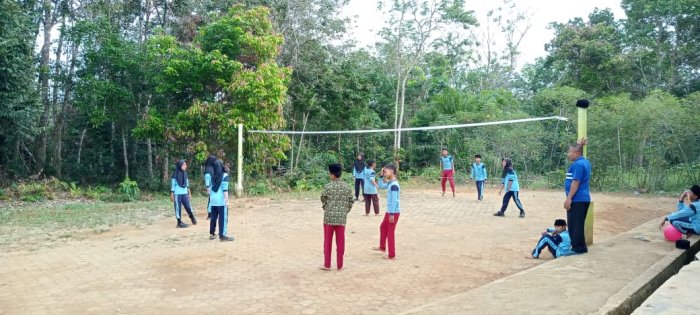 Sebelum pertandingan dimulai, guru memberikan instruksi mengenai teknik dasar passing bola voli. Latihan passing dilakukan bersama-sama untuk melatih kemampuan tangan siswa dalam menangkis bola dengan tepat. Selama kegiatan berlangsung, guru memantau langsung jalannya permainan dan memperhatikan sejauh mana siswa memahami teknik bermain bola voli yang benar. Kekompakan dan semangat siswa terlihat jelas selama pertandingan. Sorakan antar tim menambah antusiasme dan semangat siswa dalam mengikuti pelajaran olahraga. Dewan Guru Bapak Ariyanto, S.Pd.I juga turut memandu permainan siswa, sekaligus mengamati bakat-bakat yang muncul dalam bidang olahraga nonakademik.