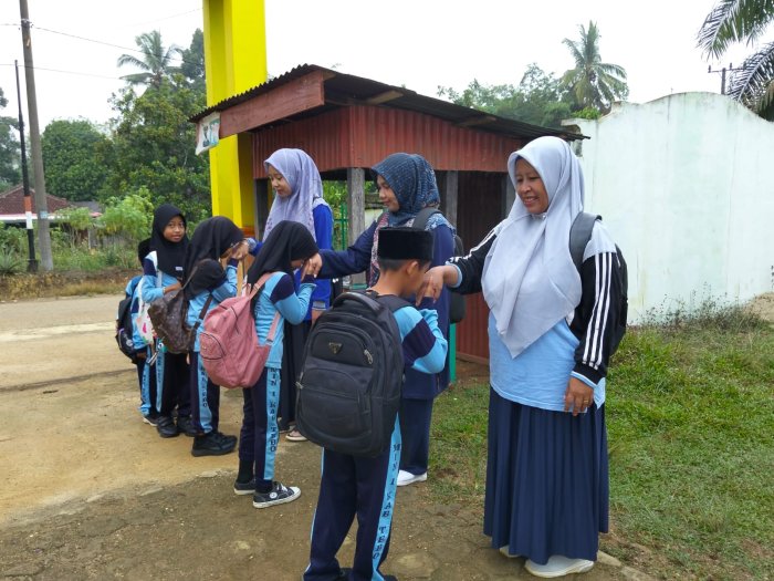 Pada Sabtu, 29 November 2025, dewan guru MIN 1 Tebo kembali melaksanakan kegiatan rutin pagi berupa piket dalam rangka menyambut kedatangan siswa di madrasah. Kegiatan ini merupakan bagian dari upaya pembiasaan yang dilakukan setiap hari, dengan jadwal piket yang telah diatur secara bergiliran bagi para guru. Setiap pagi, sebanyak tiga hingga empat guru bertugas di gerbang madrasah untuk menyambut siswa yang datang. Pada hari tersebut, guru yang bertugas antara lain Ibu Nurhidayah, S.Pd.I, Ibu Rahmawani Maghfirah, S.Pd, Ibu Marlena, S.Pd.I, dan Ibu Fadliah Jumroh, S.Pd. Mereka mulai bersiap di gerbang sejak pukul 06.20 WIB, menyambut siswa dengan ramah dan penuh semangat.
