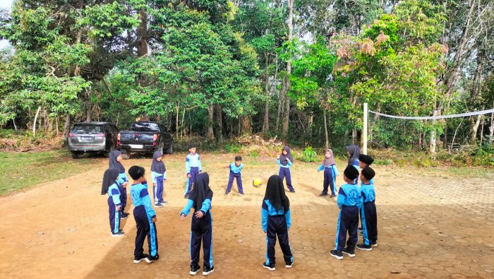 Siswa perempuan juga tidak kalah aktif. Mereka sering terlihat berlatih teknik passing bola voli bersama di lapangan voli madrasah. Latihan ini bertujuan untuk melatih kekuatan dan ketepatan gerakan tangan agar terbiasa dengan permainan bola voli. Semangat mereka dalam mengembangkan bakat olahraga sangat tinggi, terlihat dari kesungguhan saat berlatih dan keinginan untuk terus meningkatkan kemampuan. Kegiatan latihan ini tidak hanya dilakukan saat istirahat, tetapi juga setelah pelajaran olahraga selesai. Banyak siswa yang memiliki bakat di bidang sepak bola dan bola voli mengajak teman-temannya untuk berlatih bersama, sehingga suasana madrasah menjadi lebih hidup dan penuh semangat. Guru olahraga di MIN 1 Tebo juga aktif memantau perkembangan bakat siswa, baik dalam olahraga voli, sepak bola, badminton, catur, maupun tenis meja.